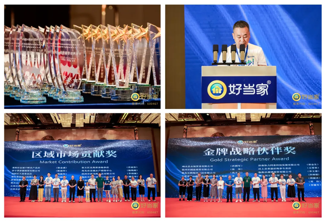 大會上,好當家集團對優秀加盟商進行頒獎,邀請加盟商代表與大家分享了自己成功的經營之道,并將研發推出的新品進行發布……